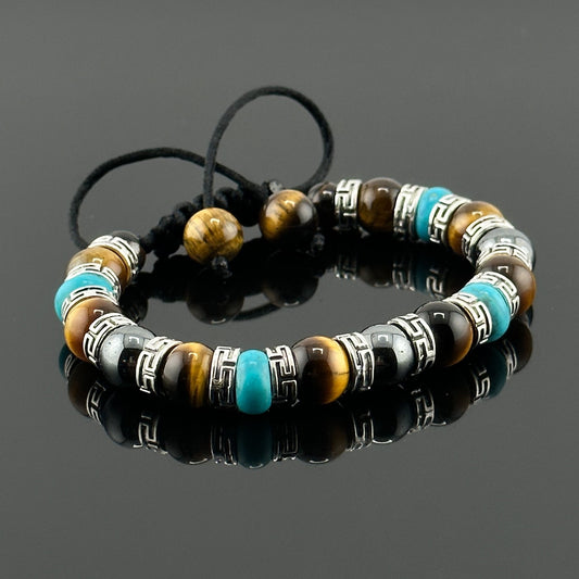 Tiger Eye, Turquoise, Hematite Bracelet | Adjustable Braided Macrame Bracelet