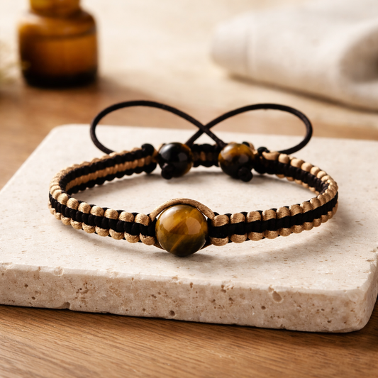 Tigers Eye Protection Bracelet | Adjustable Shamballa Macrame Braided Bracelet