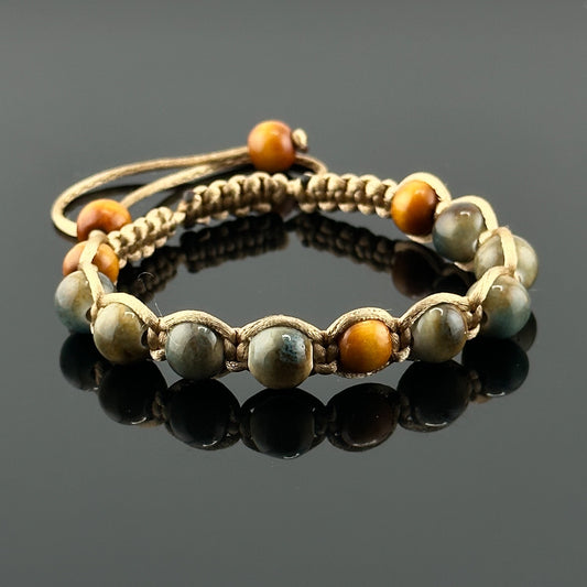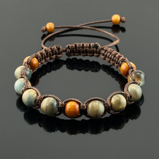 Braided Bracelet with Tigers Eye | Macrame Adjustable Shamballa Bracelet for Men Women