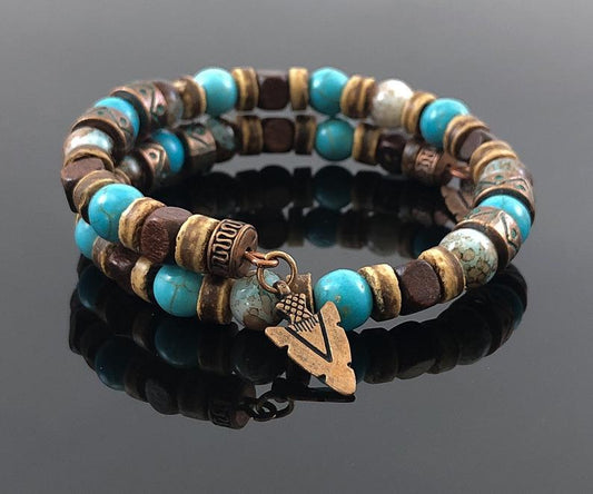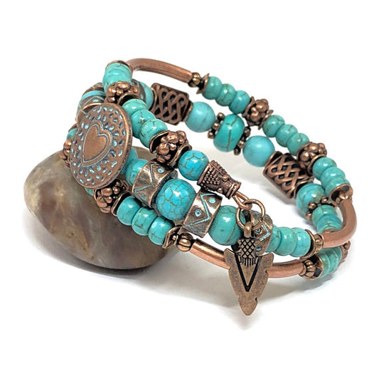 Beaded Turquoise Bracelet, Turquoise and Copper Bracelet, Unisex Bracelet