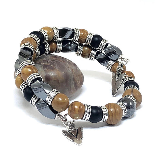 Black Onyx Bracelet, Beaded Jewelry for Men, Black & Silver, Arrowhead Bracelet