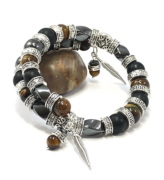 Triple Protection Bracelet | Tigers Eye Hematite Black Onyx